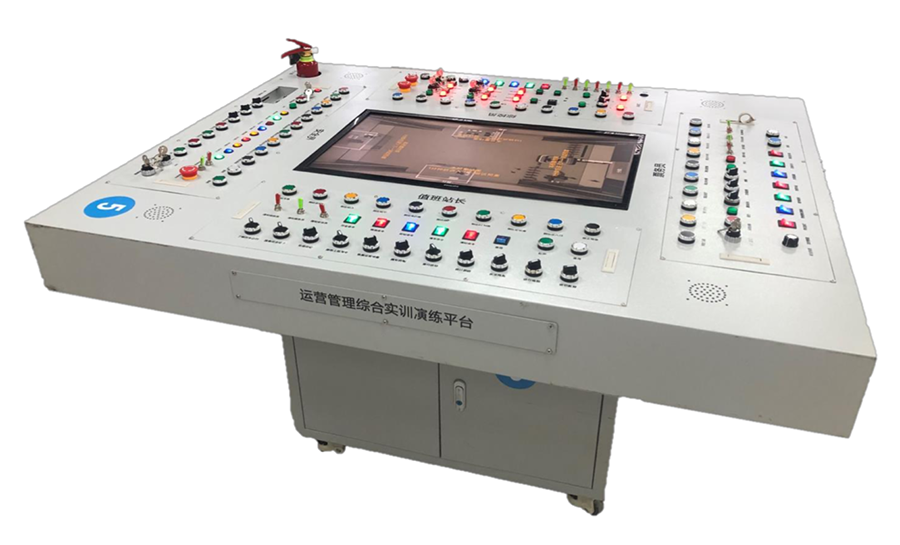 軌道交通運營管理模擬實訓(xùn)演練平臺,主要由值班站長操作臺、綜控員操作臺、票務(wù)員操作臺、安全員操作臺及對應(yīng)四個電子沙盤組成。當(dāng)進行客運組織工作時,電子沙盤分別顯示車站內(nèi)環(huán)境及發(fā)生的突發(fā)事件,運營管理每個崗位對應(yīng)崗位操作臺進行各項操作來模擬實現(xiàn)應(yīng)急預(yù)案處置,系統(tǒng)給予簡潔明了的表示和語音提示。當(dāng)進行行車組織工作時,四個電子沙盤分別顯示同一條線路的不同站場圖,四個操作臺分別代表四個車站,每個崗位均變?yōu)榫C控員(行車值班員),四個車站的綜控員根據(jù)隨機的運行圖及各類隨機突發(fā)實際或故障進行行車組織工作,完成城市軌道交通的正常運營。搭建軌道交通運營管理模擬實訓(xùn)演練平臺,實現(xiàn)城市軌道交通運營管理中各崗位協(xié)調(diào)配合對突發(fā)事件的運行處置等客運組織工作及排列進路、接發(fā)列車、調(diào)車、故障處置等行車組織工作功能,讓學(xué)生通過實踐來掌握運營管理客運組織、行車組織相關(guān)技術(shù)及各崗位協(xié)作能力,更深入了解整個軌道交通運營系統(tǒng)。實訓(xùn)平臺針對每一項功能都配備了詳細的實驗指導(dǎo),并將先進的教學(xué)設(shè)計融入產(chǎn)品配套資料,幫助學(xué)生更好的掌握相關(guān)技術(shù)。