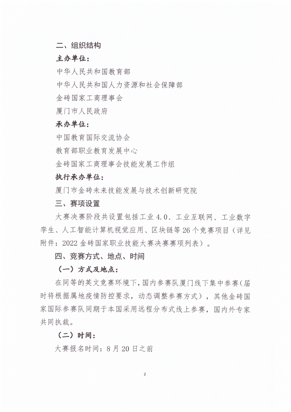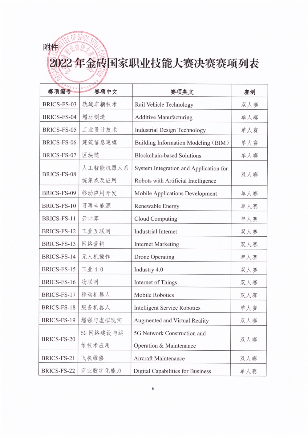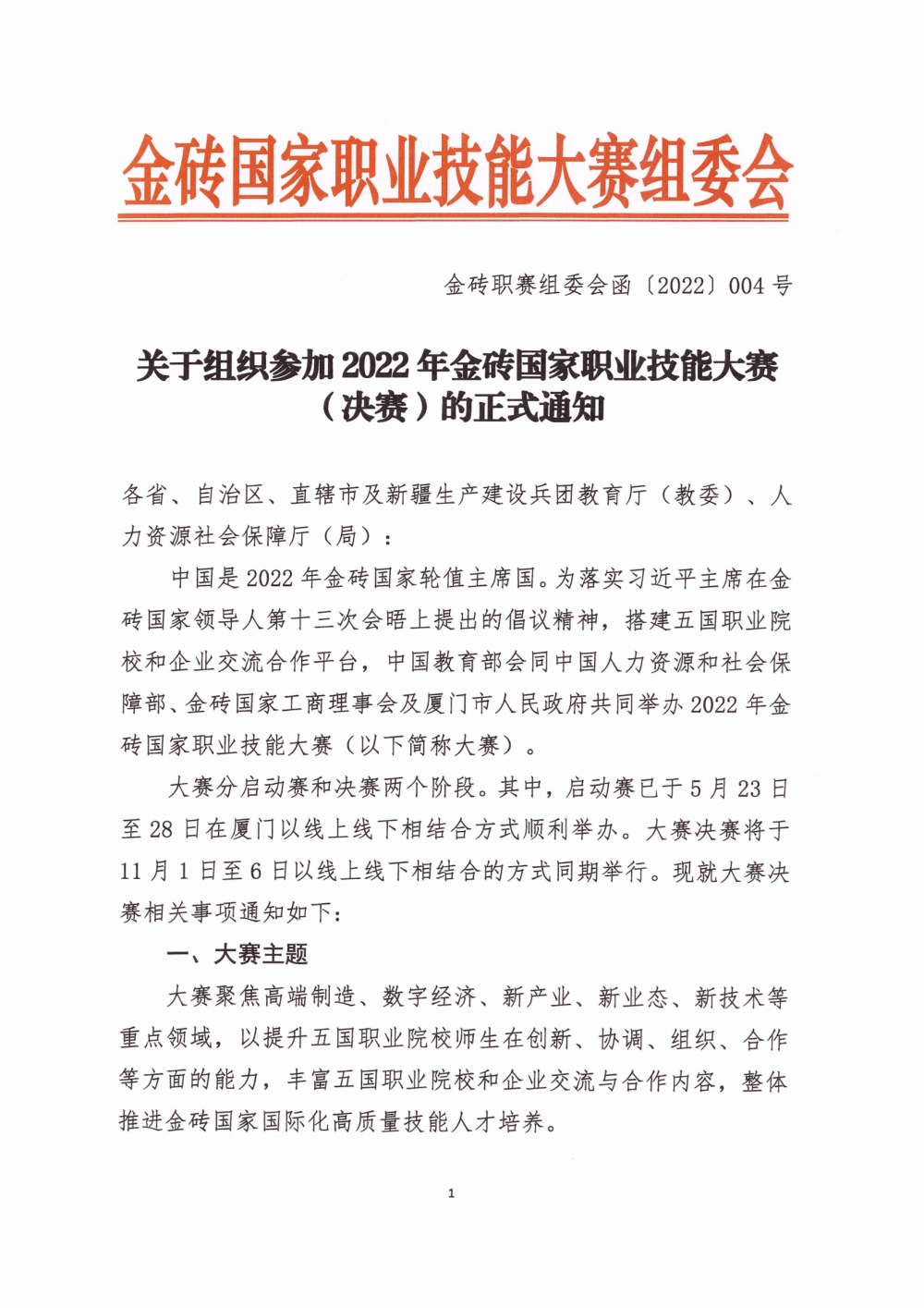 關(guān)于組織參加2022年金磚國(guó)家職業(yè)技能大賽(決賽)的正式通知